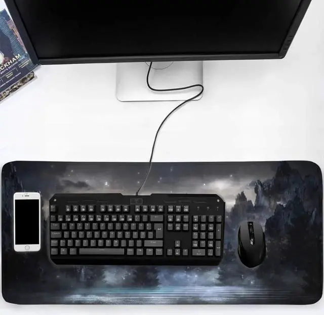 Smooth SurfaceThe Ultra-smooth surface of this mousepad provides optimum speed and accurate control effortlessly while playing games. Extended forest balck keyboard mouse pad mat gives excellent experience while you surfing the web, working in the office and so on.