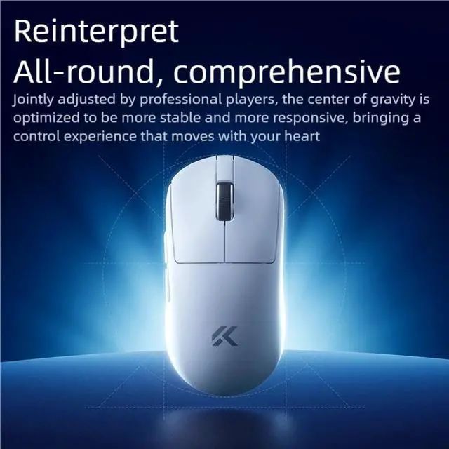 Lightweight gaming device: weighing only 59 g, ultra-lightweight with a centered gravity design for stable grip and effective control during long gaming sessions.