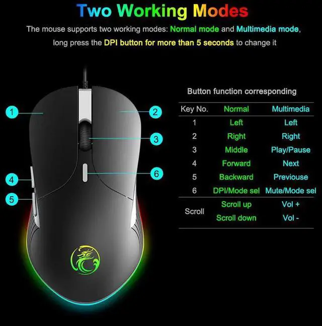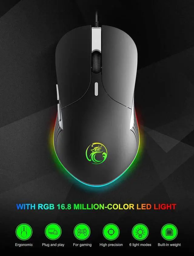 6 Colorful breathing led light , Chameleon Gaming Mouse Gamer .