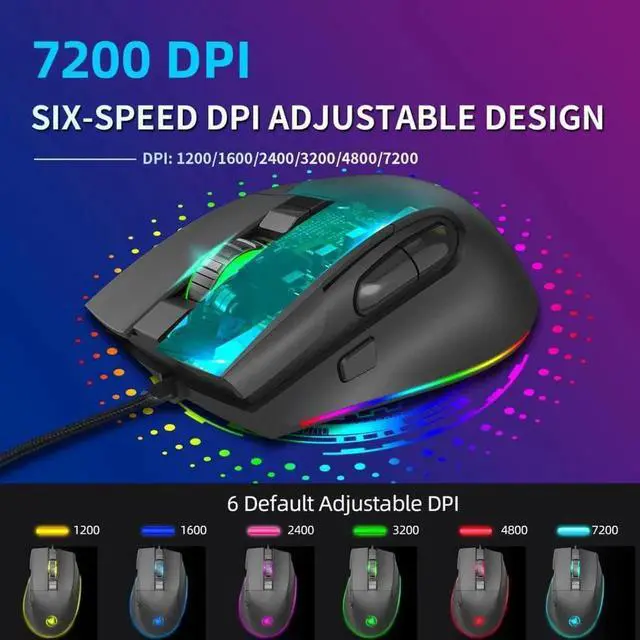7. 6-level adjustable DPI, Max. 7200 DPI