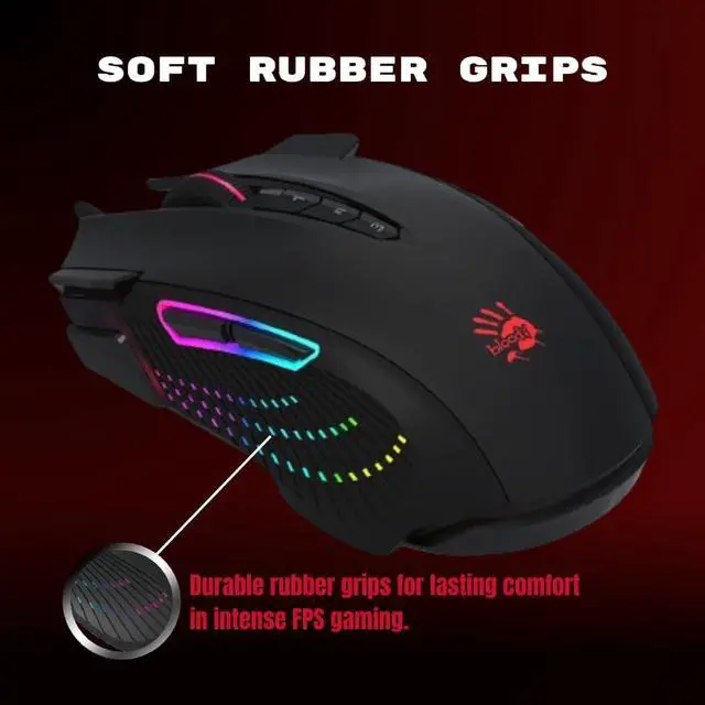 Bloody J90s RGB Gaming Mouse, High Precision 8000 CPI, 150 IPS, 25g Acceleration, 12 Customizable Buttons, Ambidextrous