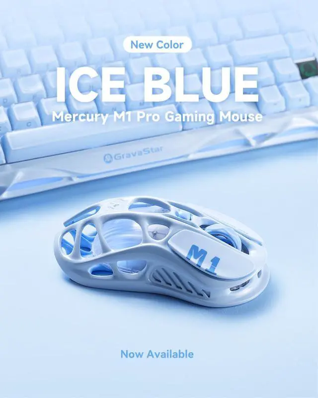 GravaStar Mercury M1 Pro Gaming Mouse, 78g Lightweight Magnesium Alloy, 26,000 DPI, PAW3395DM Sensor, 5 Programmable Buttons, Support Wired/2.4GHz/BT, Up to 200 Hours Battery Life