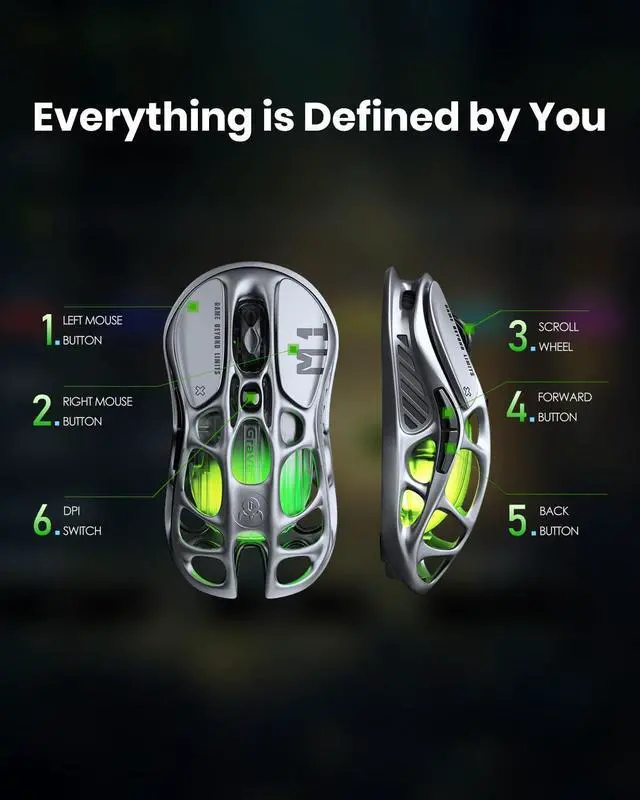 26,000 DPI Sensor & 4K Polling Rate Unseen Advantage -- Engineered with the PAW3395 sensor, enjoy ultra-smooth tracking, pixel-perfect accuracy and blazing-fast 4K polling for split-second response in every fight.
