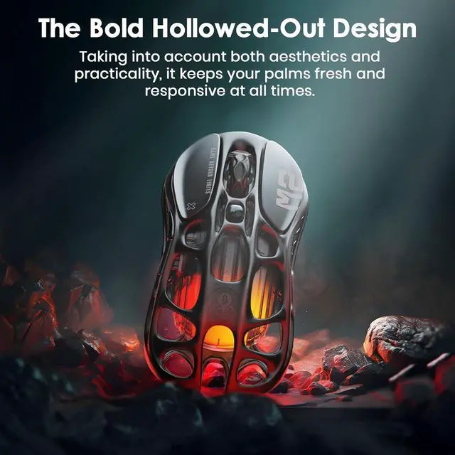 Experience the unique blend of style and practicality with the M2's hollowed-out design. This creative approach not only gives the mouse a distinctive look but also ensures optimal airflow, keeping your grip cool during intense gaming sessions.