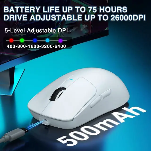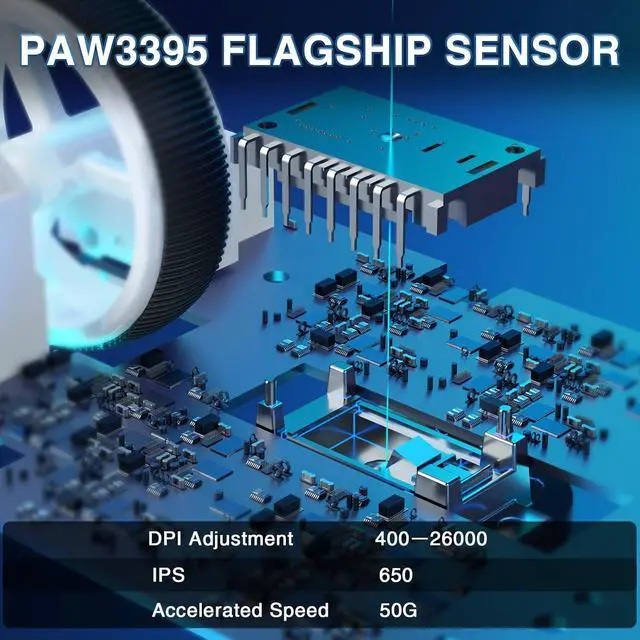 High Performance Sensors: This gaming mouse is equipped with a powerful PAW3395 sensor, 26000 programmable DPI, 650 IPS speed, 50g acceleration, and 8000Hz polling rate, ensuring precise cursor movement, enabling gamers to perform precise operations and office workers to easily handle work