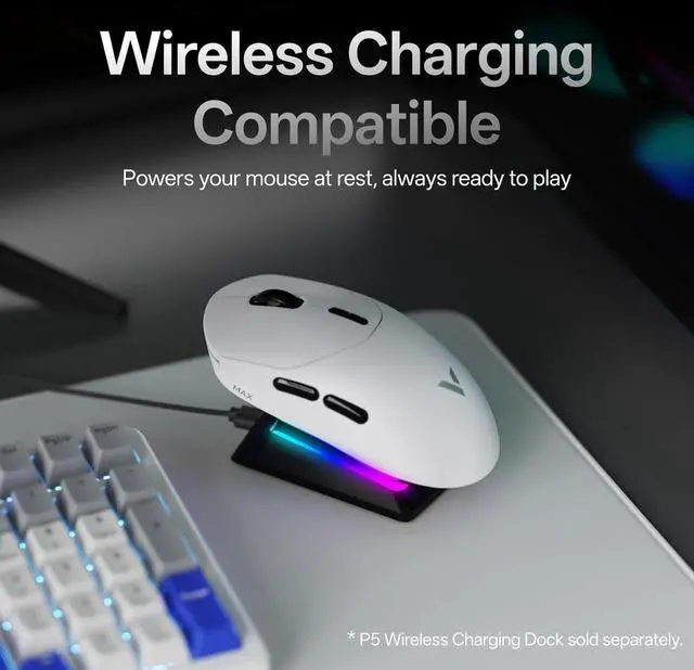 True 8K Wireless Polling RateEnjoy top-tier native 8000Hz wireless - no longer relying on software algorithm or extra wireless dongle, VT2 MAX provides a solid 8k wireless performance even in noisy tournament environments.