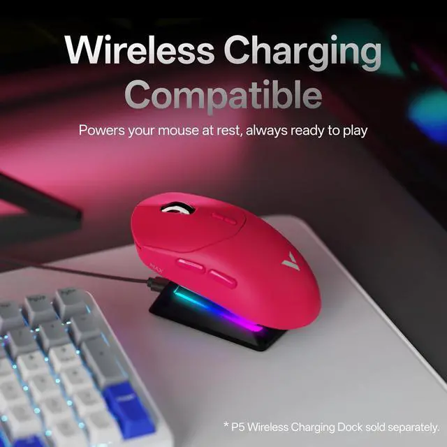 4. 120-Million Optical SwitchRegistering mouse clicks using infrared light instead of mechanical contact, the optical switch eliminates any risk of accidental double clicks, and has no debounce delay but a longer 120-million lifespan. For users who prefer traditional mechanical clicking feedback, we recommend to choose the VT2 version (100-million mechanical switch).
