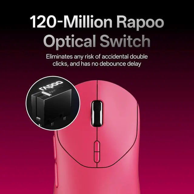 • 120-Million Optical SwitchRegistering mouse clicks using infrared light instead of mechanical contact, the optical switch eliminates any risk of accidental double clicks, and has no debounce delay but a longer 120-million lifespan. For users who prefer traditional mechanical clicking feedback, we recommend to choose the VT2 version (100-million mechanical switch).