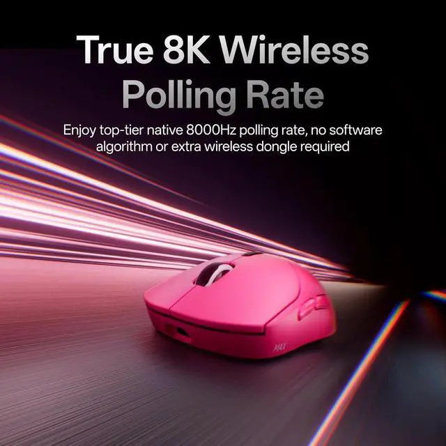 • True 8K Wireless Polling RateEnjoy top-tier native 8000Hz wireless - no longer relying on software algorithm or extra wireless dongle, VT2 MAX provides a solid 8k wireless performance even in noisy tournament environments.
