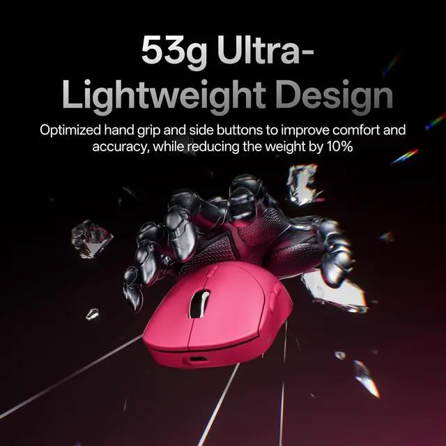 1. 53g Ultra LightweightFeaturing optimized hand grip and more easy-to-access side buttons, the VT2 MAX has significantly improved the comfort and accuracy of use, while reducing the weight by 10% - taking your gaming performance to next-level with less strain on your hand and wrist.
