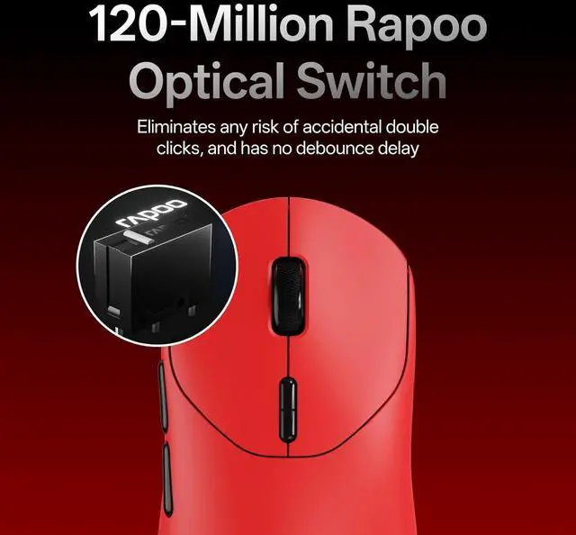120-Million Optical SwitchRegistering mouse clicks using infrared light instead of mechanical contact, the optical switch eliminates any risk of accidental double clicks, and has no debounce delay but a longer 120-million lifespan. For users who prefer traditional mechanical clicking feedback, we recommend to choose the VT2 version (100-million mechanical switch).