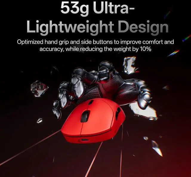 53g Ultra LightweightFeaturing optimized hand grip and more easy-to-access side buttons, the VT2 MAX has significantly improved the comfort and accuracy of use, while reducing the weight by 10% - taking your gaming performance to next-level with less strain on your hand and wrist.
