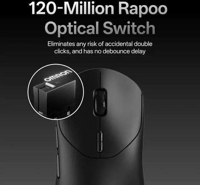 120-Million Optical SwitchRegistering mouse clicks using infrared light instead of mechanical contact, the optical switch eliminates any risk of accidental double clicks, and has no debounce delay but a longer 120-million lifespan. For users who prefer traditional mechanical clicking feedback, we recommend to choose the VT2 version (100-million mechanical switch).