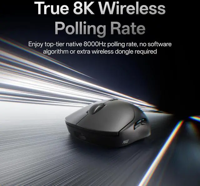 True 8K Wireless Polling RateEnjoy top-tier native 8000Hz wireless - no longer relying on software algorithm or extra wireless dongle, VT2 MAX provides a solid 8k wireless performance even in noisy tournament environments.