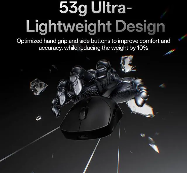53g Ultra LightweightFeaturing optimized hand grip and more easy-to-access side buttons, the VT2 MAX has significantly improved the comfort and accuracy of use, while reducing the weight by 10% - taking your gaming performance to next-level with less strain on your hand and wrist.