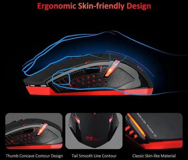 5 DPI Levels (2400, 2000, 1600, 1200, 800) to change the moving speed freely and can perfectly meet the needs both in gaming and office.