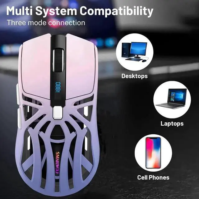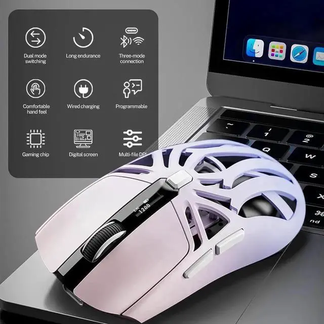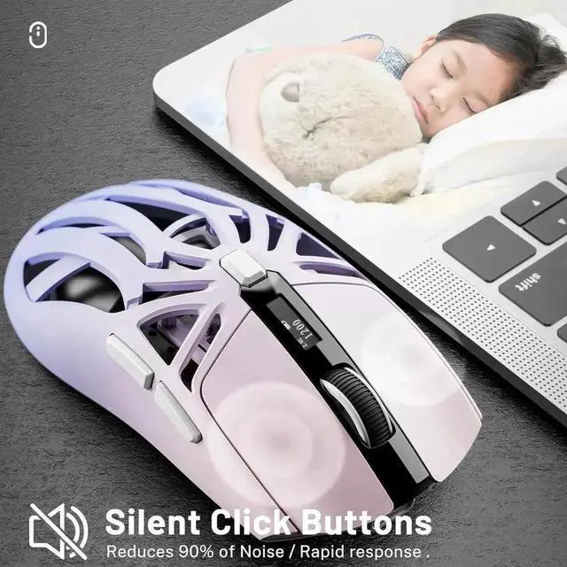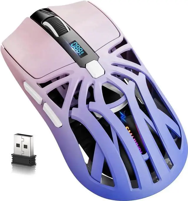 Wireless Gaming Mouse, 10000 DPI, Tri-Mode 2.4GHz/Bluetooth/Wired Mouse, 6 Buttons, Digital Display, Silent Mice, Rechargeable, Customizable Macro and RGB Backlight for PC/Mac/Laptop (Purple)