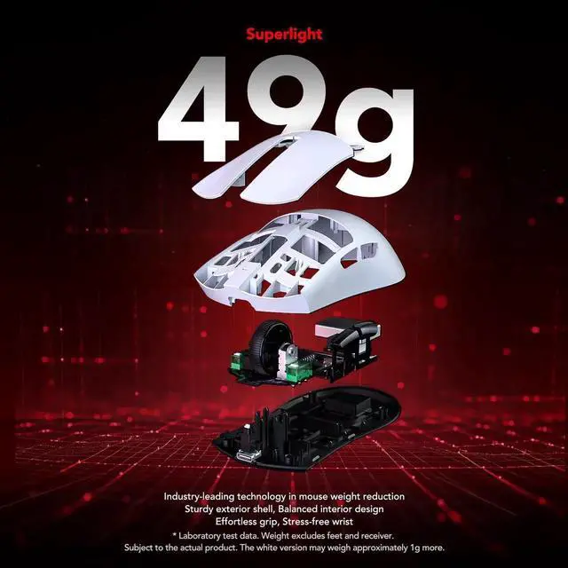 KYSONA Jupiter PRO Wireless Gaming Mouse, 26000 DPI, PAW33995 Optical Sensor, Ultralight 46g, Cool-Touch Surface Coating, 300 Hr Battery Life, 5 Programmable Buttons for PC/Mac/Laptop, White