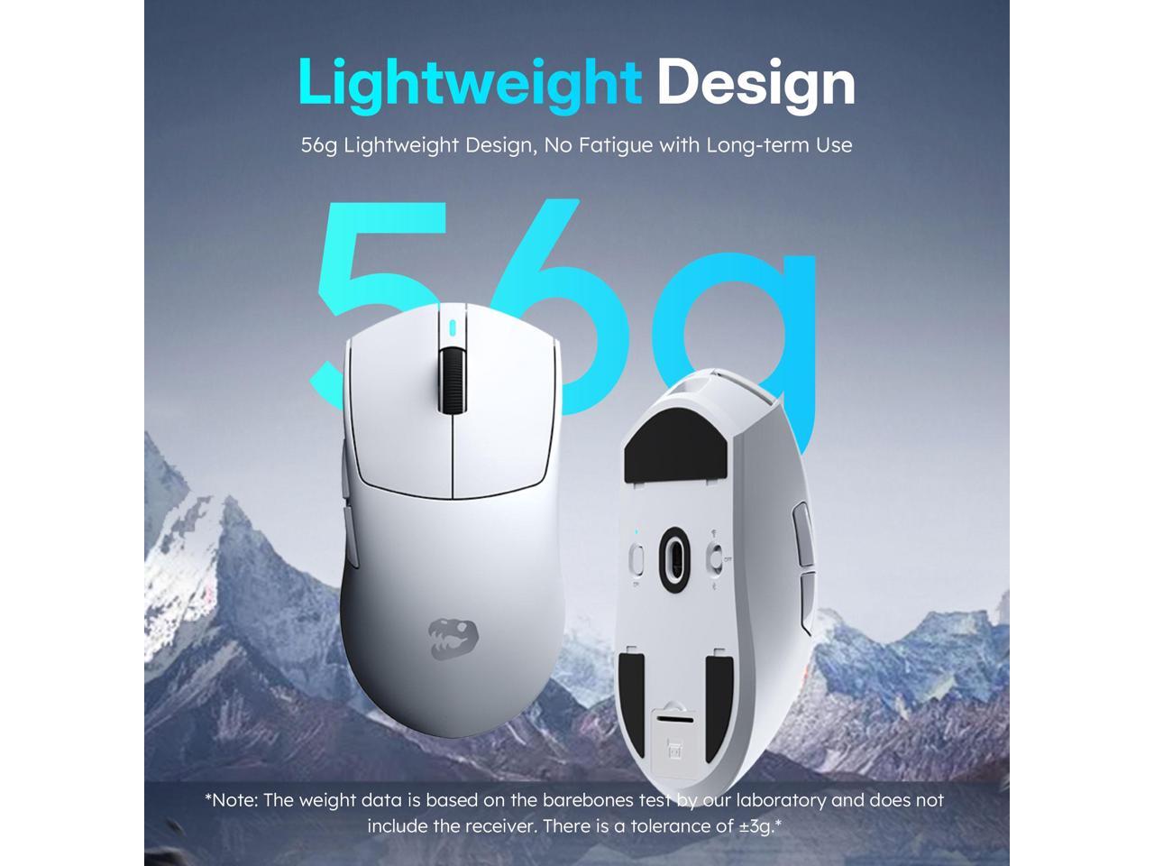 - Its lightweight symmetrical design weighs just 56 grams. The low-profile shape with a rounded back provides a comfortable grip and flexible control, accommodating various gaming styles.