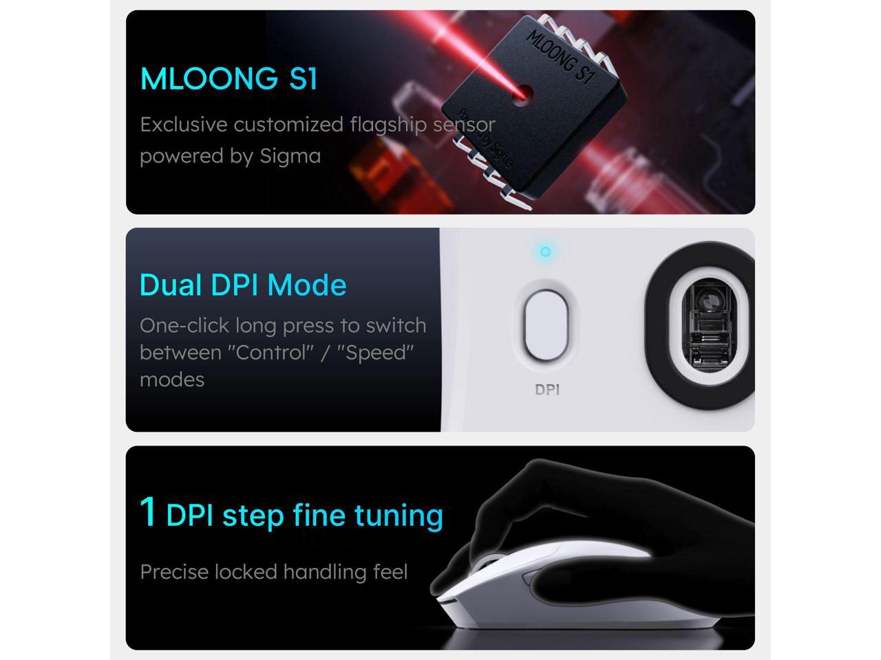 MLOONG MX301 Wireless Gaming Mouse, MLOONG S1 Sensor, 16,000 DPI, Lightweight, 4 Programmable Buttons, 140h Battery Life, On-Board Memory, PC/Mac - White