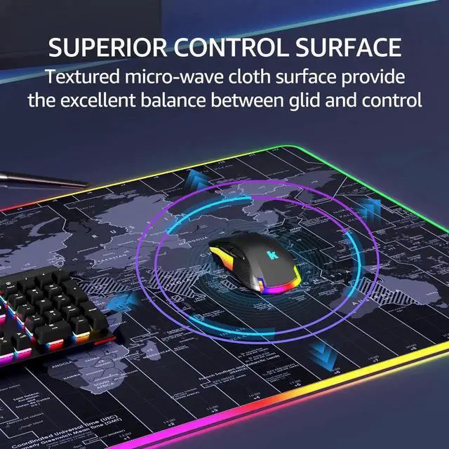 Superior Control Surface: extended mouse pad adopts textured micro-weave cloth surface on cover with enhanced command to provide the excellent balance between glide and control. The performance-tuned surface optimizes mouse tracking accuracy for both optical and laser sensors.