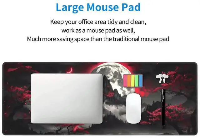 SOFT AND NON-SLIP RUBBER BASE: The soft and dense non-skid nature rubber base keeps the pad firmly in place, it can effectively prevent the mouse and keyboard from sliding and moving for stable operation. Works well on all types of desks including wood, glass, leather, metal, marble desk and more. While sturdy, the entended desk pad is flexible enough to be rolled up for easy transport, to move around so you can work or game wherever you want.