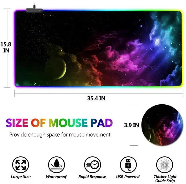 JVFYI Large RGB Gaming Mouse Pad, Keyboard Mousepad Led Extended 35.4 x 15.8 inch Non-Slip Rubber Base with 14 Lighting Modes, Big Desk Mat Waterproof, Nebula Universe