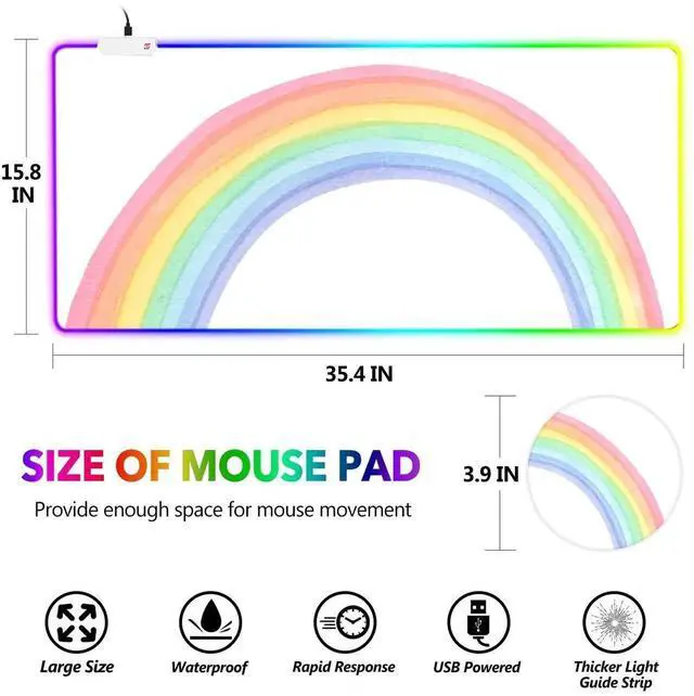14 Lighting Modes. This Large mouse pad features 14 lighting modes: including colorful, dynamic breathing lighting mode, 7 static monochrome lighting mode and lights off mode. Providing stunning visual effects and creating an immersive game environment. Power-off memory function remembers the last lighting mode you selected