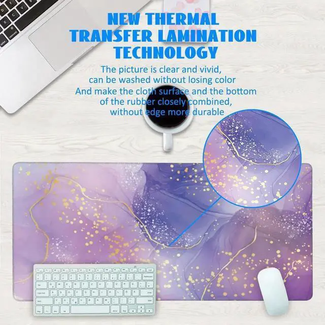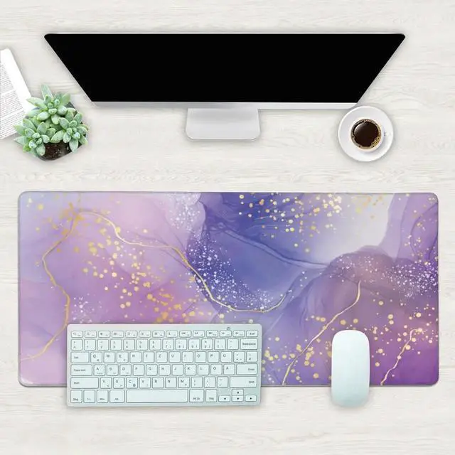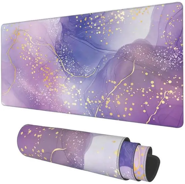 JVFYI Desk Mat, Purple Rose and Lavender Liquid Marble Extended Gaming Mouse Pad Large, 35.4"x15.7" Big Mouse Pad with Non-Slip Base and Stitched Edge, Long Computer Keyboard Mouse Mat for Home