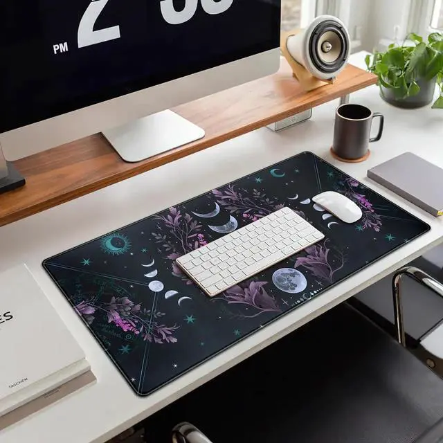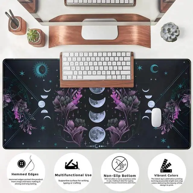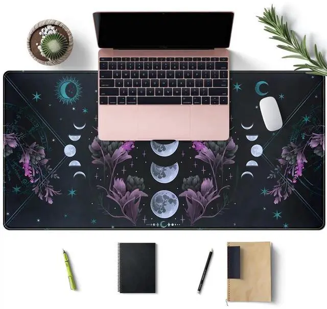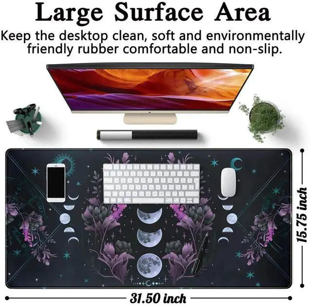 JVFYI Celestial Moon Phases Mouse Pad Large Purple Desk Mat Forest Extended Gaming Mousepad Violet Teal Desk Pad XXL 31.5 x 15.7 in Laptop Computer Mouse Keyboard Mat for Office Desk Decor