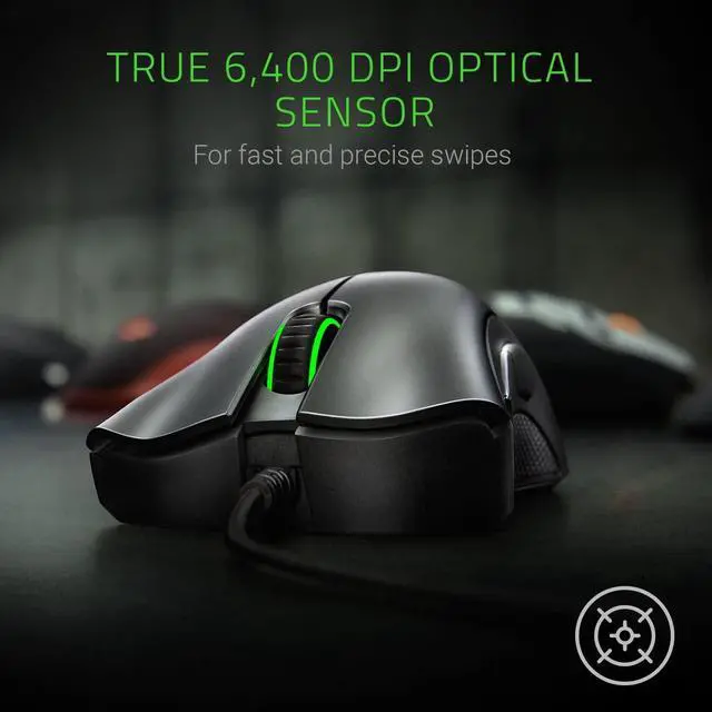 - Equipped with a 6400 DPI 4G Optical sensor, The DeathAdder allows you can move it at either Fast or slow speeds, and it will always respond onscreen with exacting accuracy and the organic fluidity.