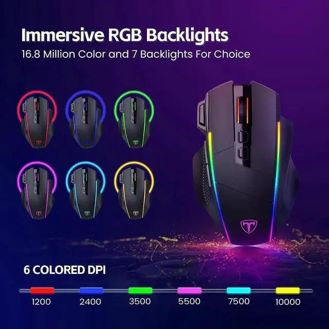 Wireless Gaming Mouse,Tri-Mode 2.4G/USB-C/Bluetoothy, Up to 10000DPI,Chroma RGB Backlit,Ergonomic with 8 Programmable Buttons,Rechargeable Computer Mouse for Laptop,PC,Mac