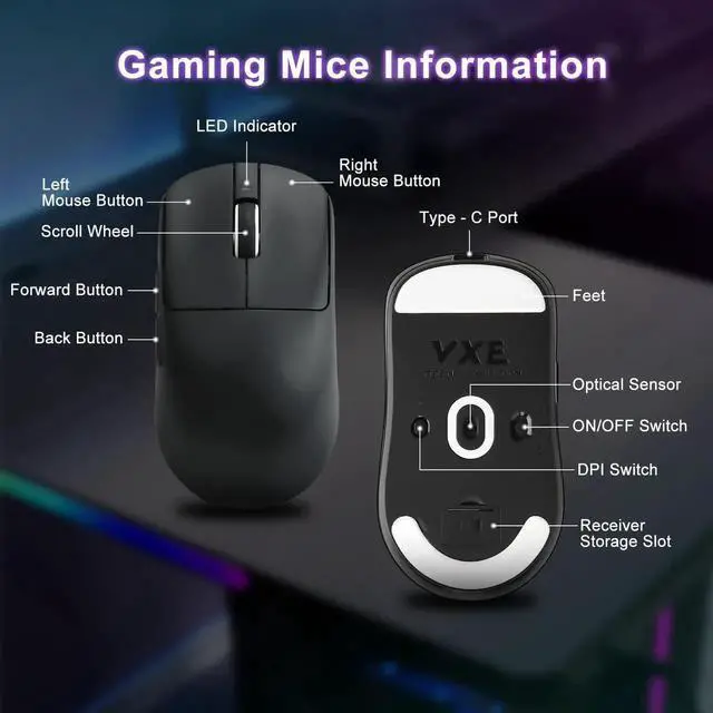 Additional Features- Web-driven: In the web-driven interface, you can easily make comprehensive personalized settings for the mouse, such as adjusting the DPI, polling rate,customizing the button functions, etc. You can flexibly adjust the mouse parameters at any time according to different game types and personal operation habits, which is convenient and efficient