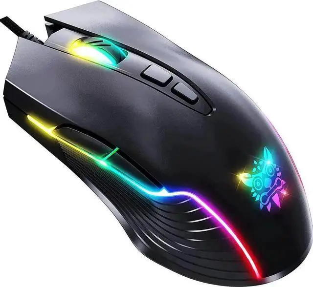 QURONew Version USB Gaming Mouse Wired, LED RGB Backlit 6400 DPI Adjustable Gaming Mouse, Grip Ergonomic Optical PC Computer Gaming Mice, 7 Buttons Gaming Mice for Windows 7/8/10/XP Vista Linux(Black)