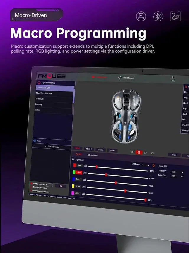 Customizable RGB & Buttons Multiple vibrant RGB backlight modes to light up your desktop at night. Support custom buttons and macro programming, allowing you to create a personalized mouse for unique needs.