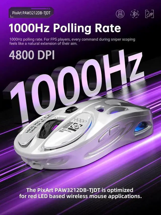 Gaming-Grade Performance Equipped with the PixArt PAW3212DB-TJDT chip, featuring an ultra-low latency 1000Hz polling rate and 5 adjustable DPI levels (up to 4800). It delivers precise, quick responses to handle both intense gaming battles and precise office tasks.
