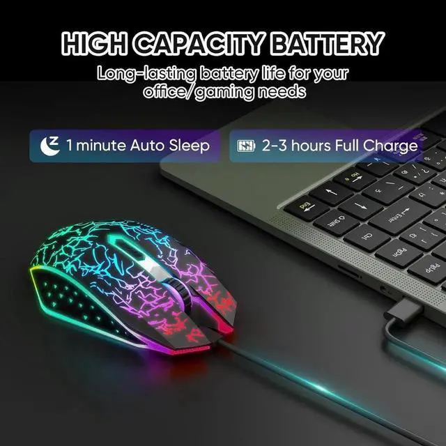 [RGB Backlight] The mouse features RGB 7-color breathing lights, offering a cool visual effect, especially at night. The lights turn off in sleep mode to save power.