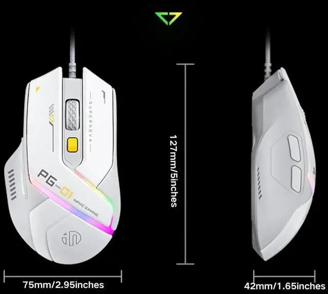 Our wired gaming mouse is lightweight (75g without cable) and compact (127*75*42 mm), which not only reduces the burden on your hand, but also makes it easy to carry.
