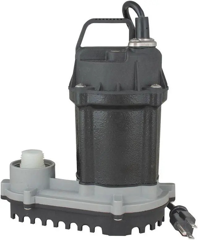 These 110V submersible sump pumps have a cast-iron body that helps dissipate heat as the pump drains water from sump pits. They are compatible with most standard U.S. residential electrical wall outlets and have a Type A (two prongs, ungrounded) or Type B (three prongs, grounded) power cord plug. Pumps have a painted or powder-coated finish to protect the body from corrosion.Submersible sump pumps drain water from basement sump pits and operate while completely underwater at the bottom of the sump pit. They are submerged in the water to cool the pump motors so they can run longer without overheating, compared to upright/pedestal sump pumps that have motors above the sump pit. Submersible pumps are electric-operated and have a pump body and pump motor combined into one unit. They have a switch that starts the pump motor when sump pit water rises to a certain height, then stops the pump motor when the water has drained down. HP 1/6, Sump Pump, Sensor