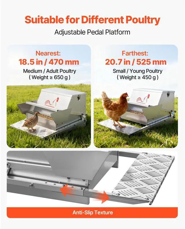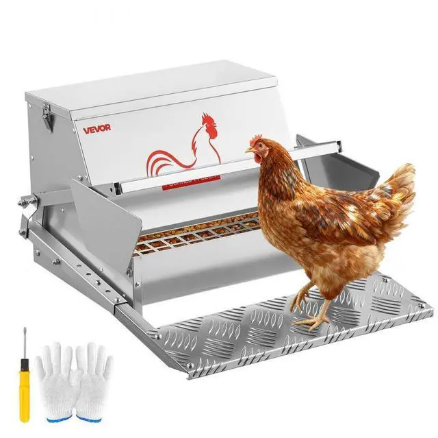 Automatic Chicken Feeder, 25 lbs Capacity, Rainproof Treadle Poultry Feeder with Lockable Lid, No Waste, Galvanized Steel Construction, Outdoor Use, for Chicken, Bantams, Poultry, Pheasants