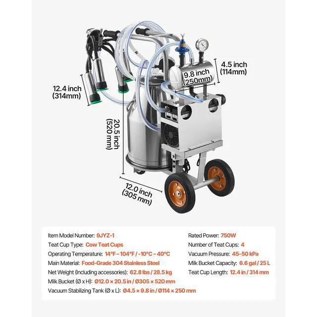 Milk Bucket Capacity: 6.6 gal / 25 L