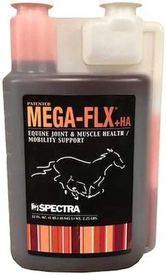 For horses experiencing joint pain and muscle soreness. Mega-Flx+HA adds 150 mg/oz Hyaluronic Acid to the already potent and patented combination of Selenium and Vitamin E for muscle problems and key nutrients and antioxidants proven effective for joint problems. Mega-Flx +HA combines the fast relief of HA and MSM to the long term lameness improvement of our proprietary FLX4 Functional Antioxidant and selenium absorption systems. Features and Benefits Contains premium ingredients for better results. Unique Patented Formula combines a balanced ration of selenium, vitamin E, MSM, keratin, key amino acids and HA.