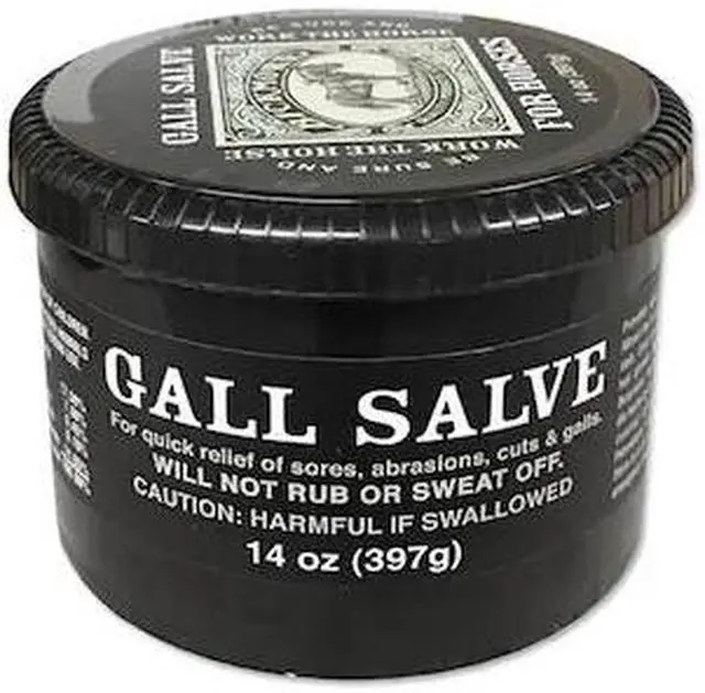 Bickmore Gall Salve has been a proven medication since 1892, as the preferred treatment for any wound, cut, sore, or scrape a horse can get. Gall Salve will eliminate the itching and irritation of eczema, fungus, and ringworm. As a multi-purpose, topical antiseptic ointment, it has a unique combination of emollients to soften, soothe and lubricate damaged skin. For hooves, massage frequently around coronary band to counteract hardness.