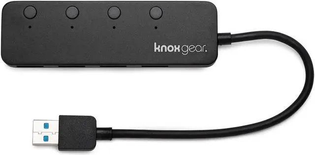 Knox Gear 4-Port USB 3.0 HubThe Knox Gear 4-Port USB 3.0 Hub instantly adds four USB 3.0 ports to any compatible device. The 3.0 hub supports data transfers up to 5 gps. LED indicators to display the power status for each port, and each port was designed with its turn on/off switch. The USB hub features a compact and slim design encased in an aluminum housing.
