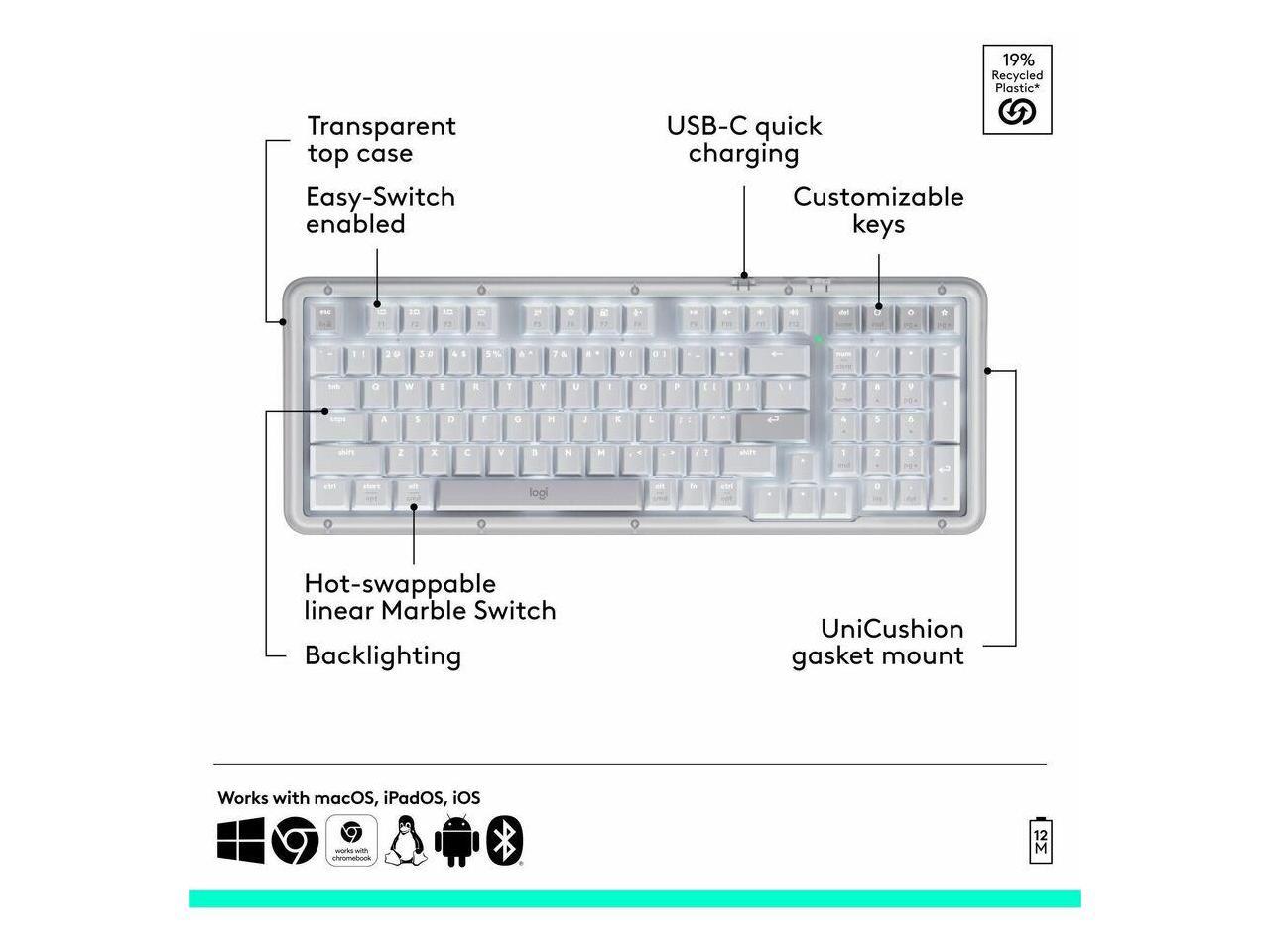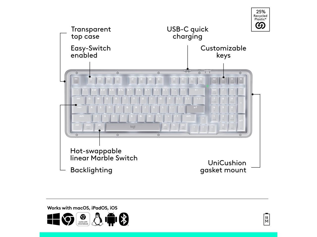 Logitech Alto Keys K98M Wireless Mechanical Keyboard, Customizable with Vibration Absorbing Gasket, Off-white