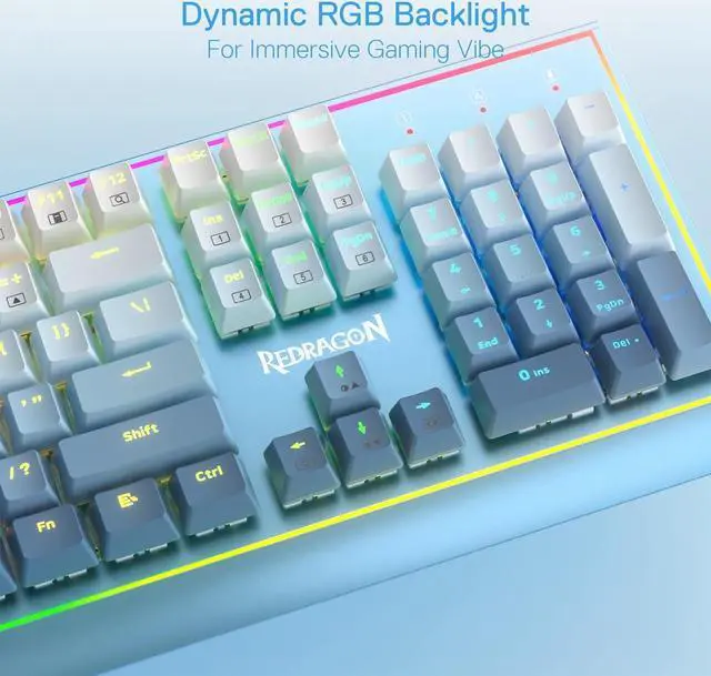 Unique Gradient Design - Redragon's first series of PC keyboards with gradient keycaps showed a distinctive look even without RGB backlight on. The keycap is made of innovative PBT mixed ABS material, never-fading letters, gentle touch, and exceptional durability. The comfortable keycap height combination conforms to ergonomics, making it suitable for prolonged use.