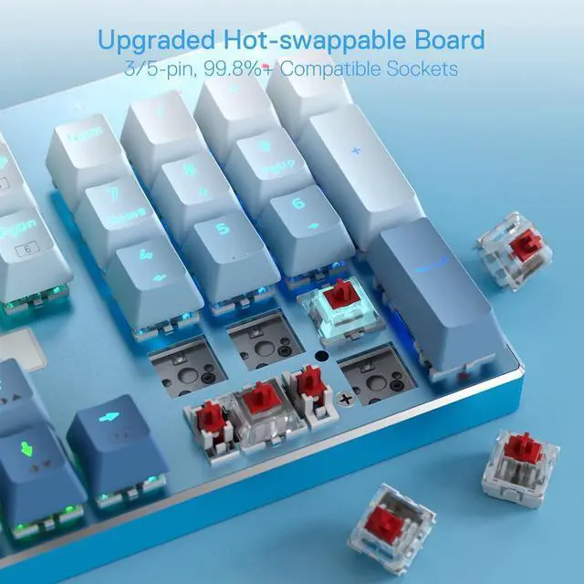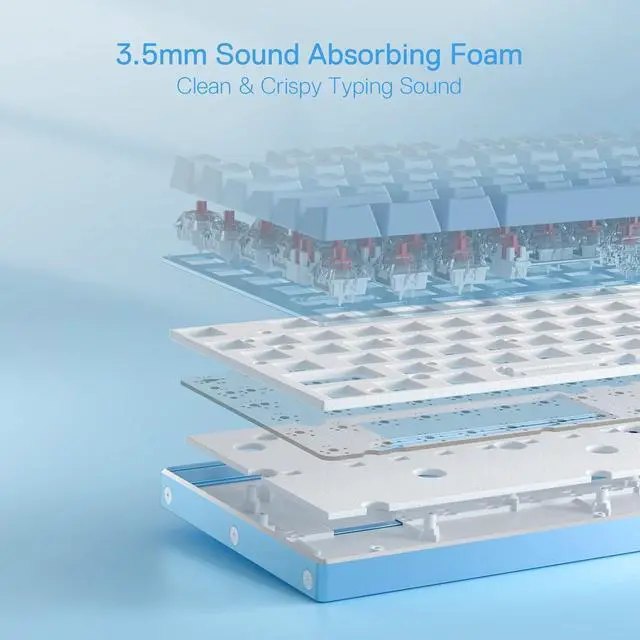 Hot-Swappable Red Switches: Hot-swappable with almost all switch types in the market no matter 3-pin or 5-pin. Quiet basic linear mechanical switches, soft key travel makes every click easy to register. Along with 3.5 mm sound absorbing foam, delivers a clear and crisp typing sound with no sick noise.