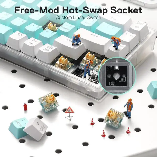 Hot-Swap Mod & Custom Switches - Hot-swappable with almost all switch types in the market no matter 3-pin or 5-pin. Quiet custom linear mechanical switches, the softer key travel makes every click easy and faster to register. Easy to mod or update it with your wishing preference, no forum researching required.