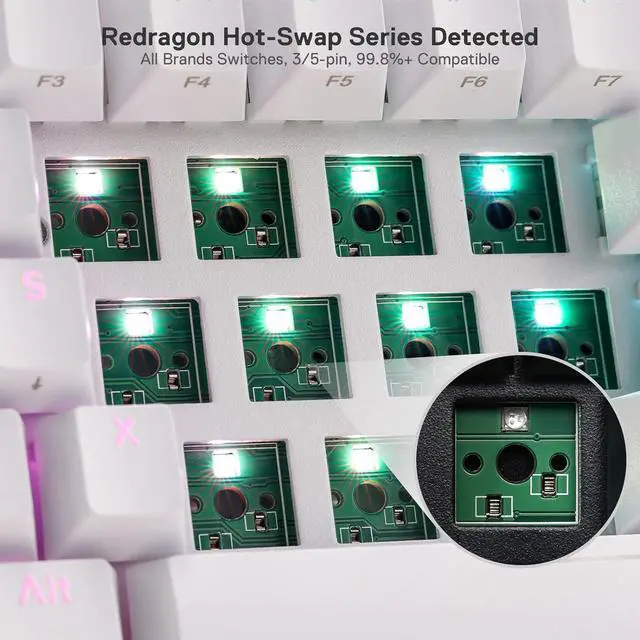YES! TRUE HOT-SWAP - The transformative innovation with 99.8 %+ switches compatible free-mod hot swappable Redragon keyboard is available now. The unique exclusive structure design of the socket makes the switch mounting easier and less wobbling.