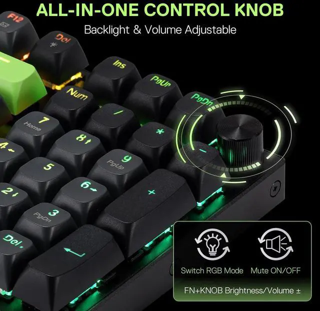 ONE-Knob Control - Armed with a convenient easy access control knob, the keyboard backlight brightness and media (volume, play/pause, switch) are all in control with no hassle. Plus functionary with no extra keys or space to waste